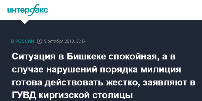 Ситуация в Бишкеке спокойная, а в случае нарушений порядка милиция готова действовать жестко, заявляют в ГУВД киргизской столицы