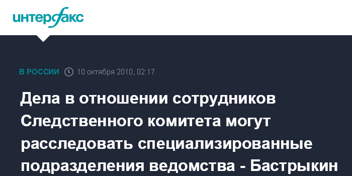 Дела в отношении сотрудников Следственного комитета могут расследовать специализированные подразделения ведомства - Бастрыкин