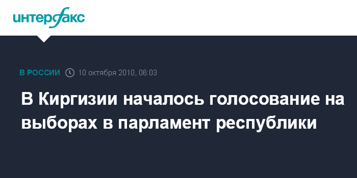 Бишкек. 10 октября. ИНТЕРФАКС - В Киргизии в 08:00 (06:00 мск) открылись избирательные участки, и началось голосование на выборах депутатов парламента Киргизии. Голосование подлиться до 20:00 (18:00 мск.).