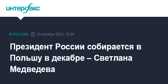 Президент России собирается в Польшу в декабре – Светлана Медведева