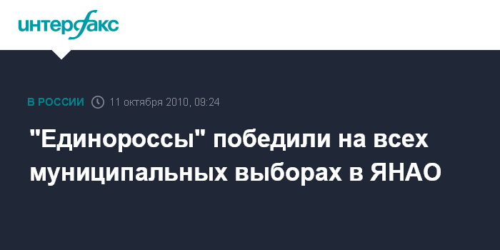 Салехард. 11 октября. INTERFAX.RU - Все кандидаты от "Единой России" победили на выборах глав муниципальных образований в Ямало-Ненецком автономном округе, сообщает пресс-служба окружного избиркома.
