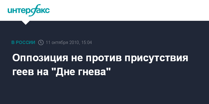 Москва. 11 октября. INTERFAX.RU - Российская оппозиция не против того, чтобы в митинге под названием "День гнева", который состоится в Москве во вторник, приняли участие представители сексуальных меньшинств.