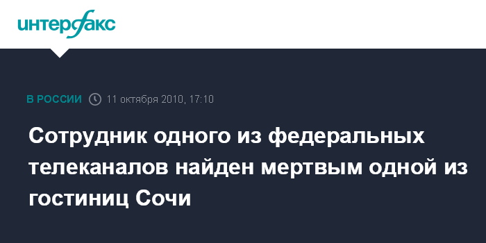 Сотрудник одного из федеральных телеканалов найден мертвым одной из гостиниц Сочи
