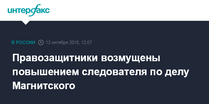 Правозащитники возмущены повышением следователя по делу Магнитского