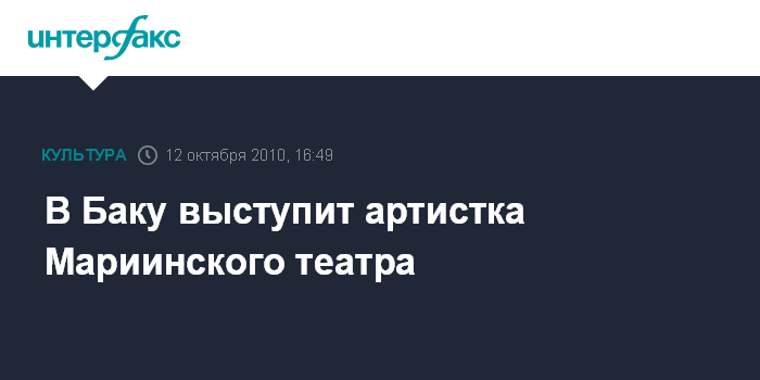 Баку. 12 октября. INTERFAX.RU - Солистка Мариинского театра оперы и балета Регина Рустамова выступит в Баку, сообщили агентству "Интерфакс" в Азербайджанском Государственном академическом театре оперы и балета.