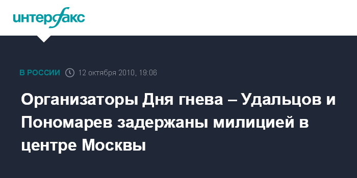 Организаторы Дня гнева – Удальцов и Пономарев задержаны милицией в центре Москвы