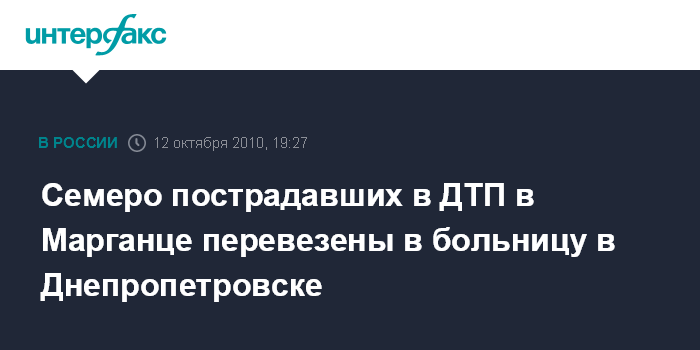 Днепропетровск. 12 октября. INTERFAX.RU - Семеро пострадавших в ДТП в Марганце перевезены в областную больницу им.Мечникова в Днепропетровске. Двое из них находятся в крайне тяжелом состоянии, у остальных состояние стабильно тяжелое.