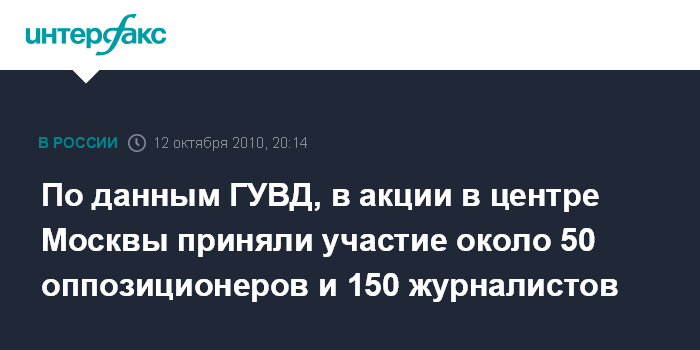 По данным ГУВД, в акции в центре Москвы приняли участие около 50 оппозиционеров и 150 журналистов