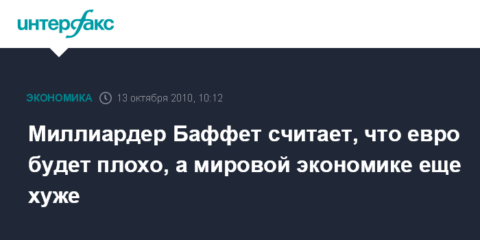 Миллиардер Баффет считает, что евро будет плохо, а мировой экономике еще хуже