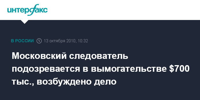Московский следователь подозревается в вымогательстве $700 тыс., возбуждено дело
