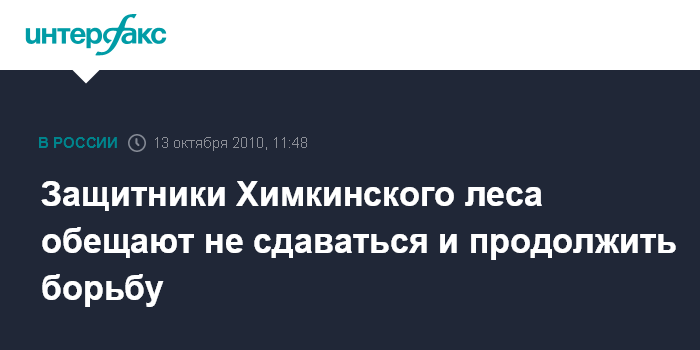 Москва. 13 октября. INTERFAX.RU - Защитники Химкинского леса продолжат борьбу в случае, если будет принято решение о продолжении строительства трассы Москва-Санкт-Петербург через лес, заявила лидер движения "В защиту Химкинского леса" Евгения Чирикова.