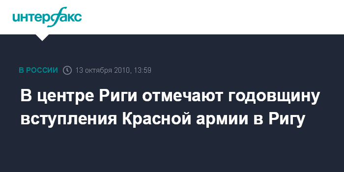Рига. 13 октября. INTERFAX.RU - Около 100 человек в среду утром возложили цветы к памятнику Победы в Риге по случаю 66-ой годовщины освобождения города Красной армией.