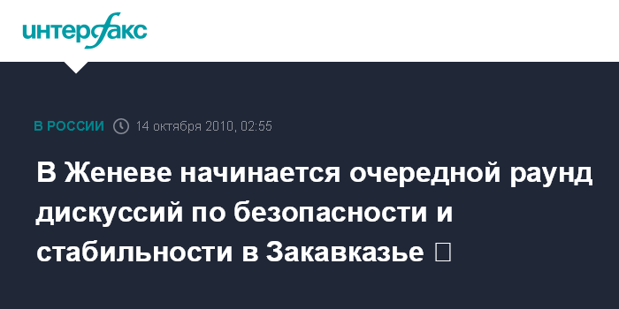 Москва. 14 октября. ИНТЕРФАКС - Очередной, уже 13-й по счету раунд дискуссий по безопасности и стабильности в Закавказье, как ожидается, откроется в четверг в Женеве.