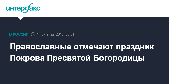 Москва. 14 октября. INTERFAX.RU - Праздник Покрова Пресвятой Богородицы (День милосердия и сострадания), отмечают православные в этот четверг.