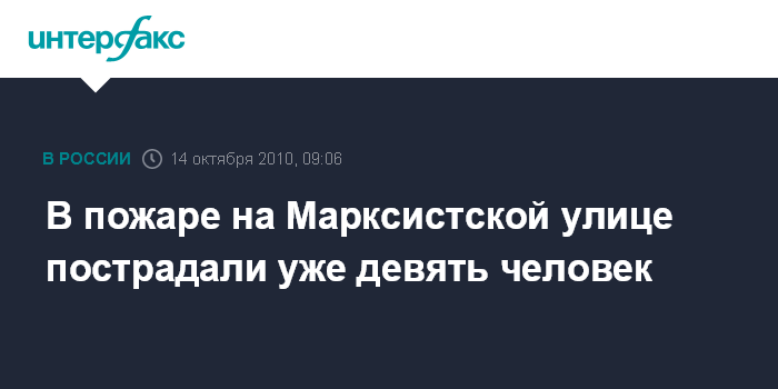 Москва. 14 октября. INTERFAX.RU - В результате пожара в двухэтажном здании на Марксистской улице в Москве пострадали девять человек, сообщил "Интерфаксу" начальник пресс-службы ГУ МЧС по Москве Евгений Бобылев.