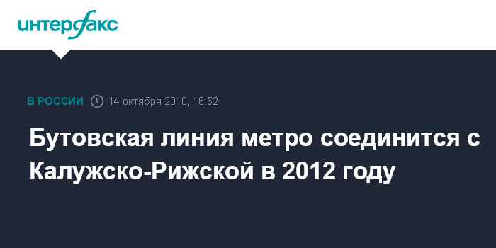 Москва. 14 октября. INTERFAX.RU - Перегон от станции "Улица Старокачаловская" Бутовской линии легкого метро до станции "Битцевский парк" планируется ввести в эксплуатацию в 2012 году.