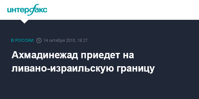Лондон. 14 октября. INTERFAX.RU - Президент Ирана Махмуд Ахмадинежад посетит границу с Израилем в ходе официального визита в Ливан, пишет в четверг британская газета The Guardian.