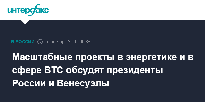 Масштабные проекты в энергетике и в сфере ВТС обсудят президенты России и Венесуэлы
