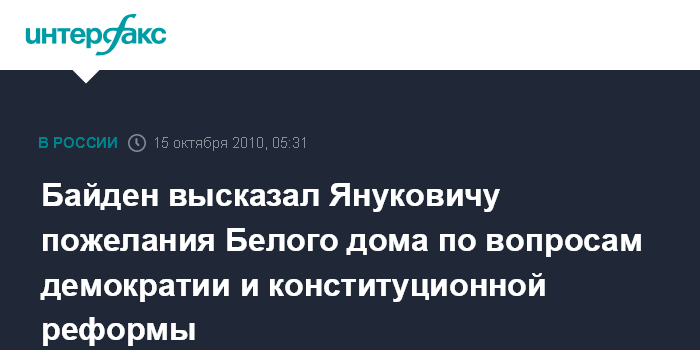 Дж.Байден также сказал В.Януковичу, что "процесс конституционной реформы, начавшийся с решения Конституционного суда от 1 октября, должен включать сдержки и противовесы и выработать конституцию для всего народа Украины", отмечается в сообщении.