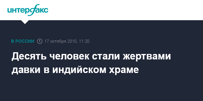 Лондон. 17 октября. INTERFAX.RU - В давке на религиозном празднике Наваратри в штате Бихар (Восточная Индия) погибли как минимум 10 человек - четыре женщины и шестеро мужчин, сообщает в воскресенье телерадиокорпорация Би-би-си. Кроме того, множество людей получили травмы. Десятки тысяч человек собрались у местного храма для молитвы.