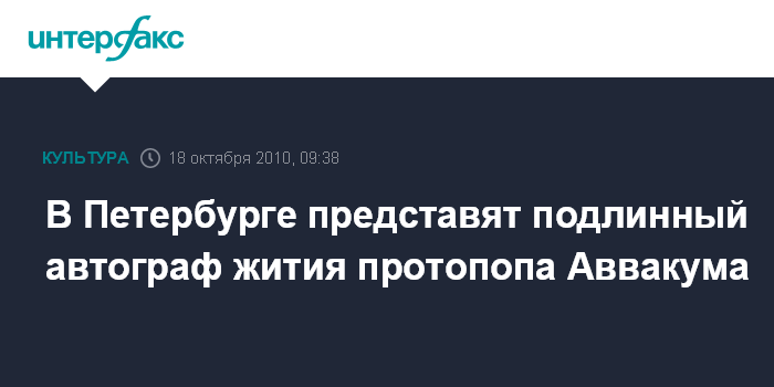 В Петербурге представят подлинный автограф жития протопопа Аввакума