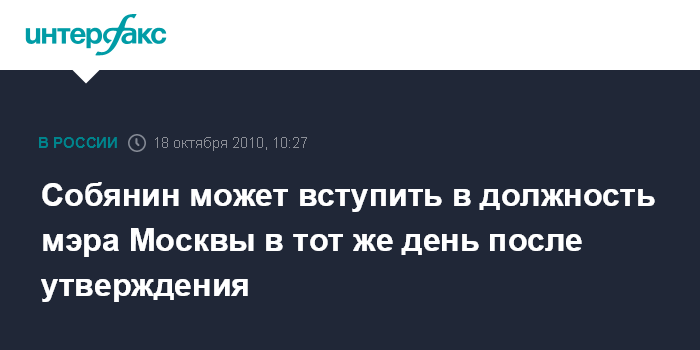 Собянин может вступить в должность мэра Москвы в тот же день после утверждения
