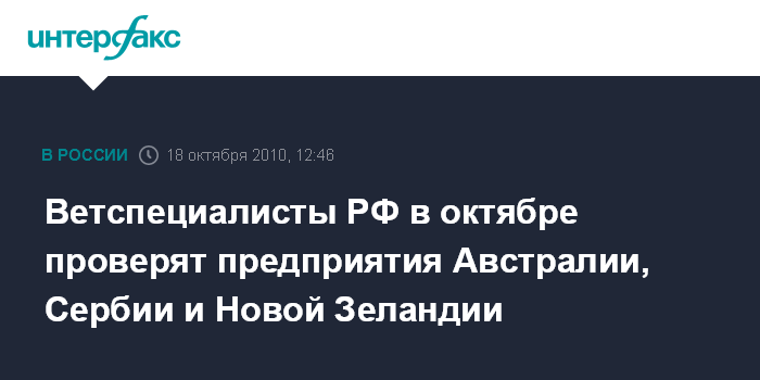 Ветспециалисты РФ в октябре проверят предприятия Австралии, Сербии и Новой Зеландии