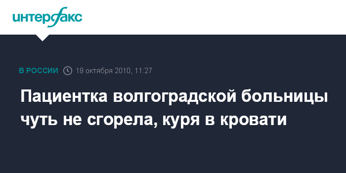 Пациентка волгоградской больницы чуть не сгорела, куря в кровати