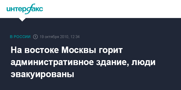 Москва. 19 октября. INTERFAX.RU – На востоке Москвы загорелось административное здание, проведена эвакуация людей, сообщили "Интерфаксу" в пресс-службе ГУ МЧС по Москве во вторник.