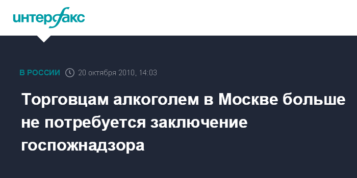 Торговцам алкоголем в Москве больше не потребуется заключение госпожнадзора