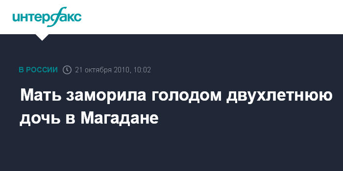 Магадан. 21 октября. INTERFAX.RU - Следственные органы Магаданской области возбудили уголовное дело против 40-летней местной жительницы, которая до смерти заморила голодом свою двухлетнюю дочь.