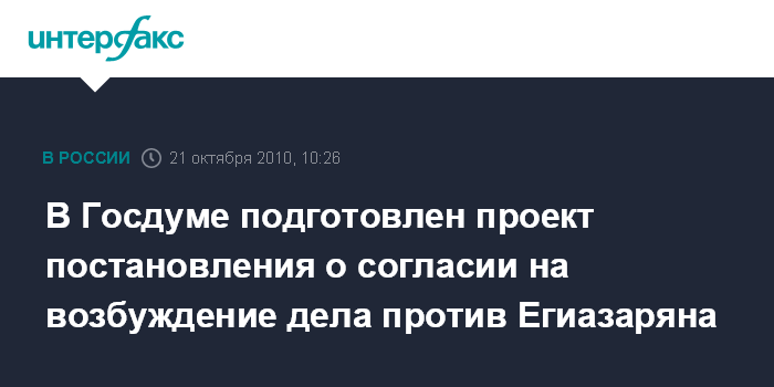 В Госдуме подготовлен проект постановления о согласии на возбуждение дела против Егиазаряна