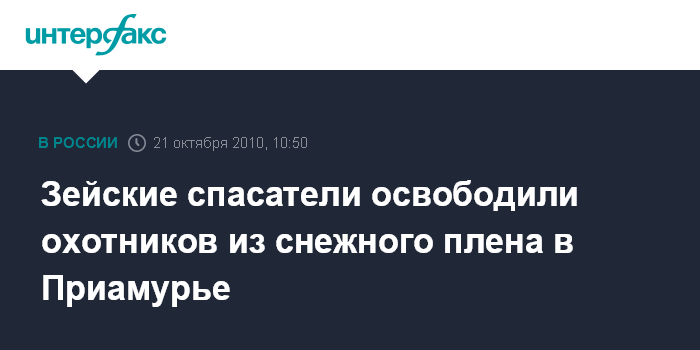Хабаровск. 21 октября. INTERFAX.RU - В Амурской области завершилась операция по спасению двух охотников, попавших в снежный плен, сообщает в четверг пресс-служба ГУ МЧС России по Амурской области.