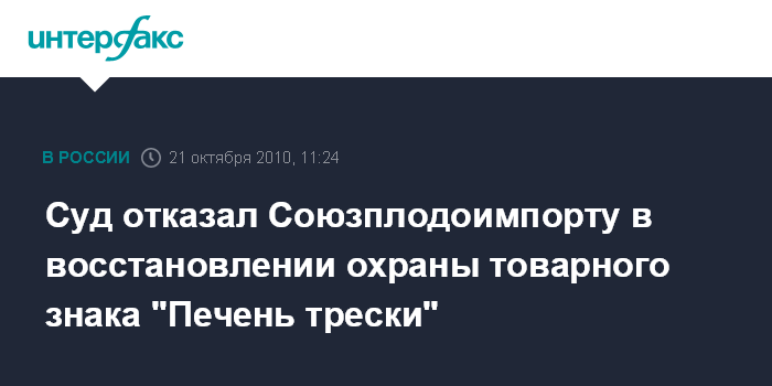 Суд отказал Союзплодоимпорту в восстановлении охраны товарного знака "Печень трески"