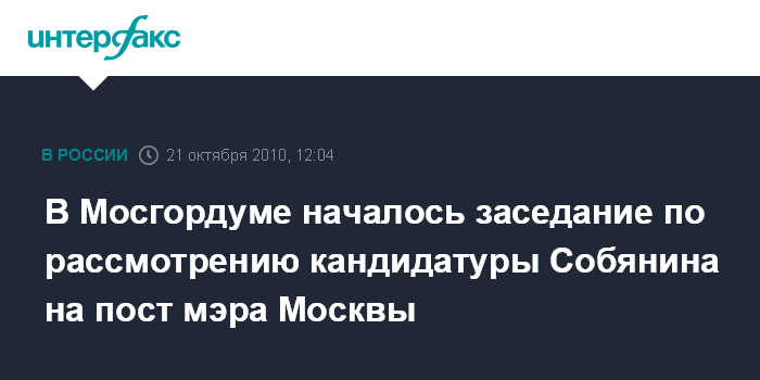 Москва. 21 октября. INTERFAX.RU - Внеочередное заседание Мосгордумы по рассмотрению предложенной президентом РФ кандидатуры Сергея Собянина на пост мэра Москвы началось в 12:00.