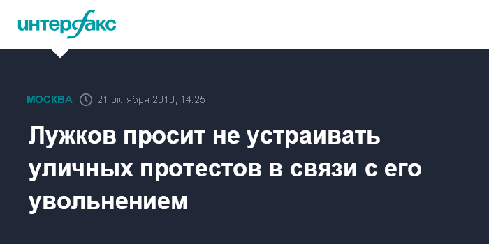 Москва. 21 октября. INTERFAX.RU - Экс-мэр Москвы Юрий Лужков призывает не организовывать массовых акций в его поддержку после его отрешения от должности.
