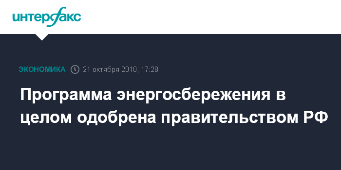 Программа энергосбережения в целом одобрена правительством РФ