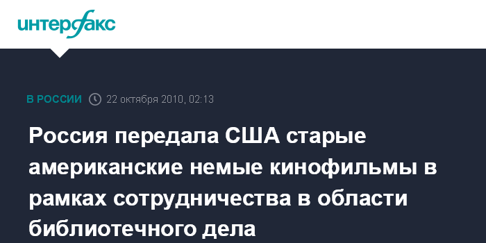 Россия передала США старые американские немые кинофильмы в рамках сотрудничества в области библиотечного дела
