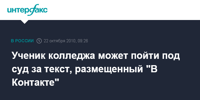 Ученик колледжа может пойти под суд за текст, размещенный "В Контакте"