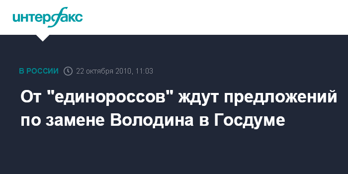 Москва. 22 октября. INTERFAX.RU - В ЦИК РФ в течение ближайших двух недель будут ждать предложений от партии "Единая Россия" по кандидатуре, которой должен быть передан депутатский мандат Вячеслава Володина.