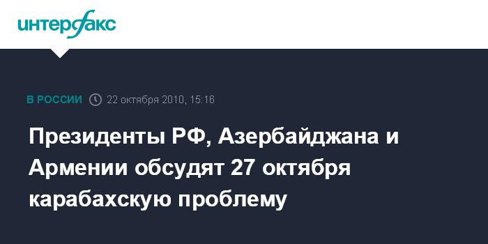 Президенты РФ, Азербайджана и Армении обсудят 27 октября карабахскую проблему