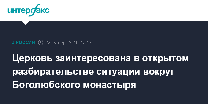 Церковь заинтересована в открытом разбирательстве ситуации вокруг Боголюбского монастыря