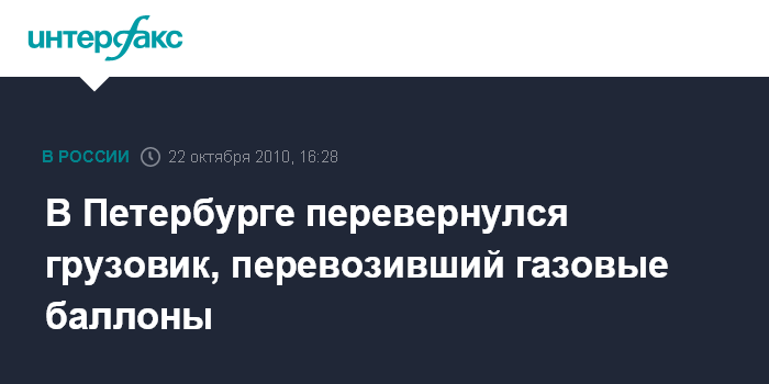 Санкт-Петербург. 22 октября. INTERFAX.RU - На юго-востоке Петербурга перевернулся грузовик, перевозивший полтора десятка газовых баллонов, сообщает пресс-служба Главного управления МЧС по городу в пятницу. По данным ведомства, инцидент произошел в Невском районе города.