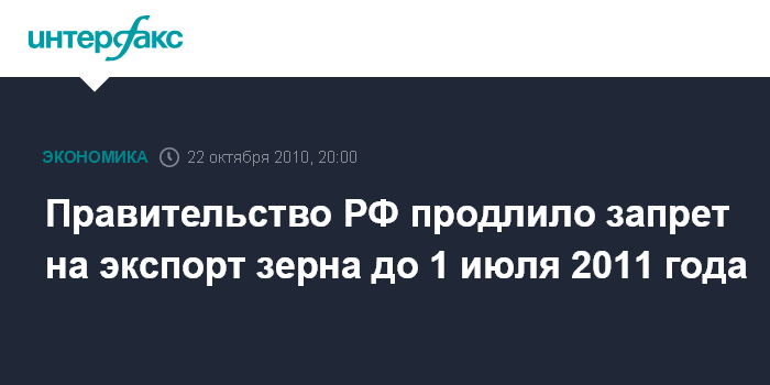 Предыдущее решение запрещало экспорт зерна с 15 августа по 31 декабря 2010 года.