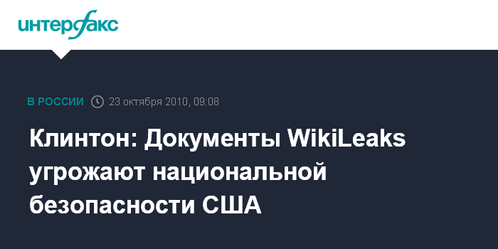 Клинтон: Документы WikiLeaks угрожают национальной безопасности США