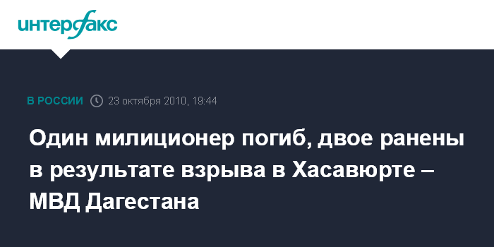 Между тем, по данным источника "Интерфакса" в штабе городского отдела внутренних дел Хасавюрта, с учетом тех сотрудников милиции, которые получили контузии, число пострадавших достигает 10 человек. Один из раненых в тяжелом состоянии.