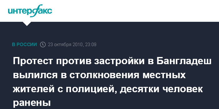 Лондон. 23 октября. ИНТЕРФАКС - В Бангладеш около 50 человек ранены в результате столкновения полиции и жителей города Дакка, протестующих против строительства армейских объектов, сообщает британская телерадиовещательная корпорация Би-би-си в субботу.