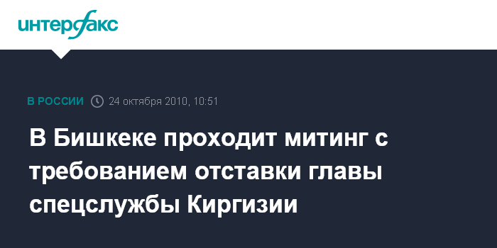 Бишкек. 24 октября. INTERFAX.RU - Около 1000 сторонников лидера партии "Ата-Журт" Камчибека Ташиева собрались перед зданием парламента Киргизии в Бишкеке, где расположен рабочий кабинет президента страны. Собравшиеся требуют отправить в отставку главу Государственной службы национальной безопасности Киргизии Кенешбека Душебаева, а также скорейшего объявления итогов состоявшихся 10 октября парламентских выборов. Участники митинга сообщили "Интерфаксу", что они считают главу спецслужбы причастным к совершению вооруженного нападения на лидера партии, которое произошло вечером 23 октября у дома К.Ташиева.