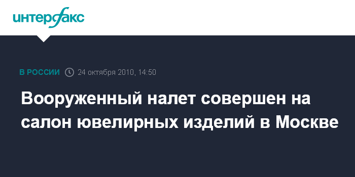 Москва. 24 октября. INTERFAX.RU - В Москве неизвестные совершили вооруженное нападение на салон ювелирных изделий, сообщил "Интерфаксу" в воскресенье источник в правоохранительных органах. По предварительной информации, двое неизвестных проникли в салон ювелирных изделий, расположенный по адресу проспект Вернадского, д.39А, где, угрожая ножом и предметом, похожим на пистолет, сотрудникам магазина и охране, похитили ювелирные изделия, после чего скрылись. На месте работает оперативная группа.