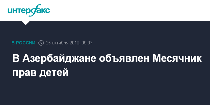 Баку. 25 октября. INTERFAX.RU - Месячник прав детей проходит в Азербайджане по инициативе уполномоченного по правам человека Эльмиры Сулеймановой, сообщает пресс-служба омбудсмена.